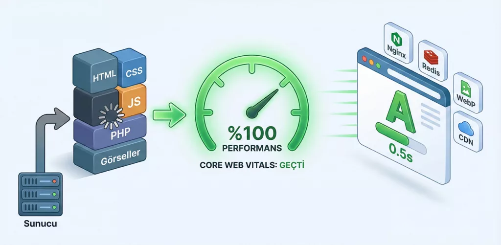 İleri seviye optimizasyon yapan firmalar; Nginx veya LiteSpeed sunucu teknolojileri, Redis veya Varnish önbellekleme sistemleri, PHP-FPM tuning, görsel optimizasyonu için WebP/AVIF dönüştürücüleri ve CDN (Cloudflare vb.) entegrasyonlarını kullanır.